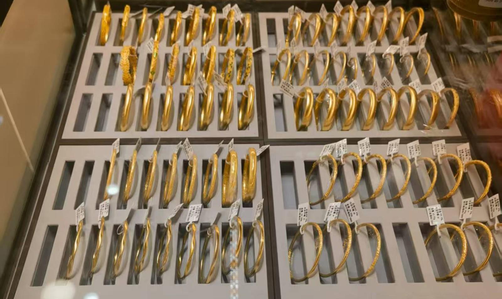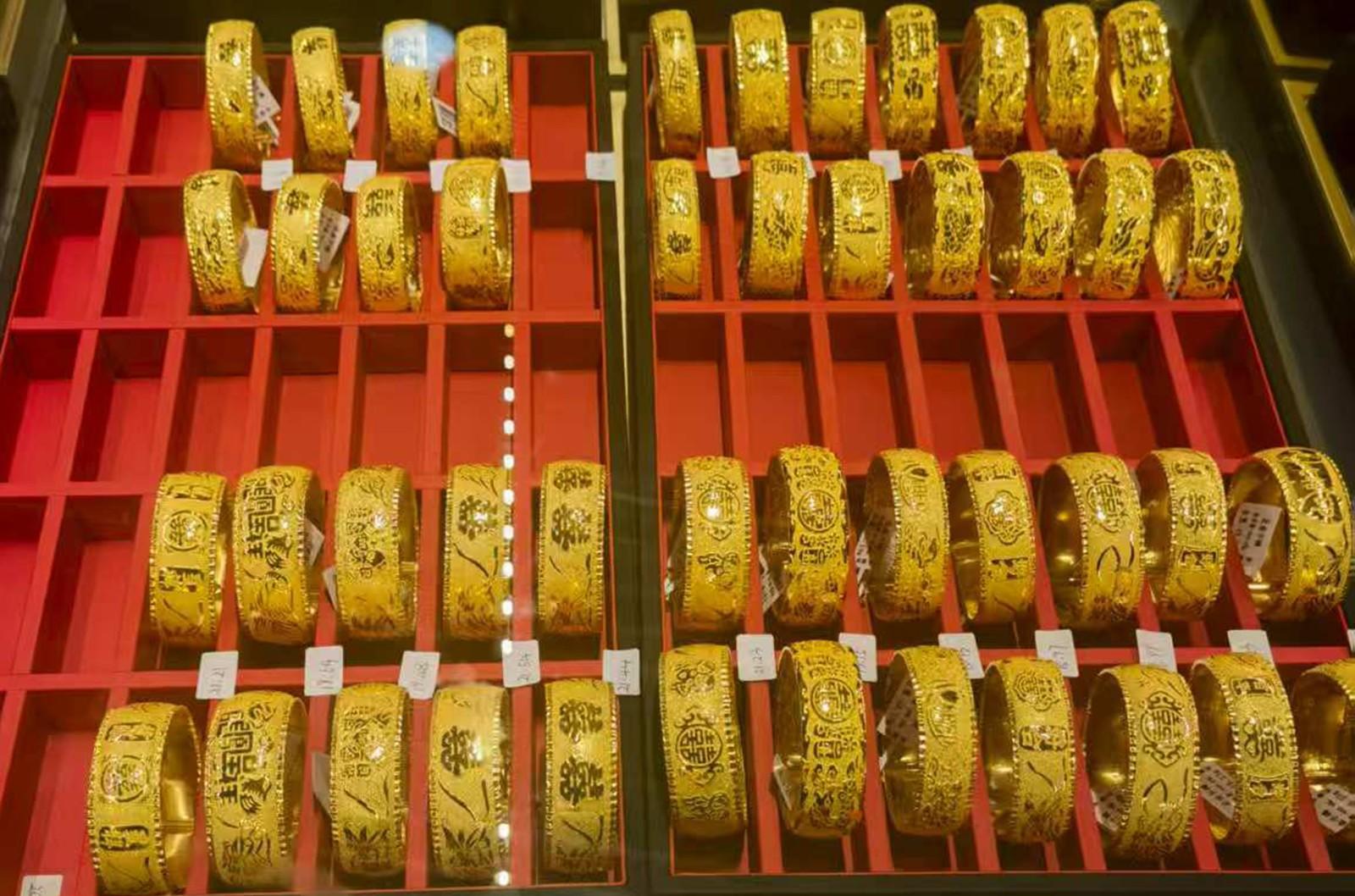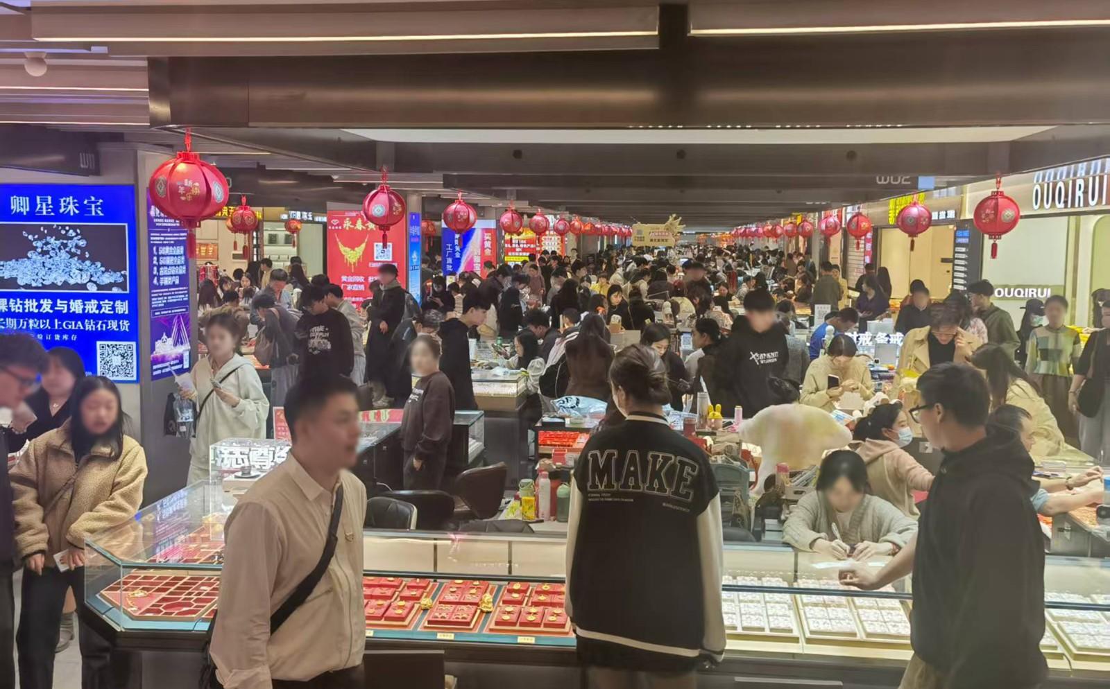 在水贝负一楼珠宝商场,记者发现,这里的金银珠宝琳琅满目,金灿灿的一片。难能可贵的是,和其他地方的黄金珠宝门店相比,这里人流很大,周末更是人潮涌动。
