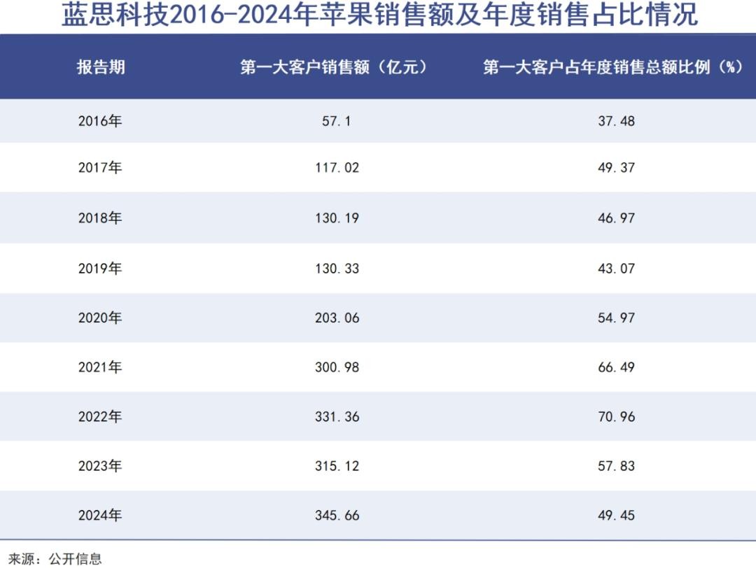 根据财报数据,2024年,歌尔股份对第一大客户销售占比为31.96%,而2023年该数据达到了43.38%;领益智造2024年第一大客户销售占比为22.07%,2023年则为24.22%;2024年,蓝思科技的第一大客户销售占比为49.45%,2023年该数据为57.83%,2022年高达71%。显然,这几家公司对第一大客户也就是苹果的依赖程度,有不同程度的下降。