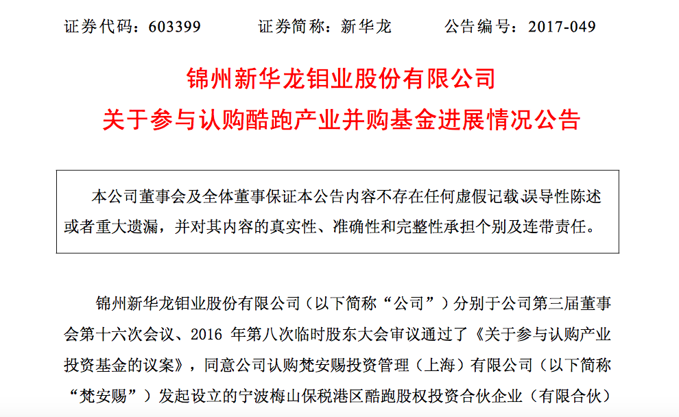 多酷基金——宁波梅山保税港区多酷股权投资合伙企业是由梵安赐投资管理(上海)有限公司发起设立,锦州新华龙钼业股份有限公司和嘉兴厚全股权投资合伙企业共同参与的基金。