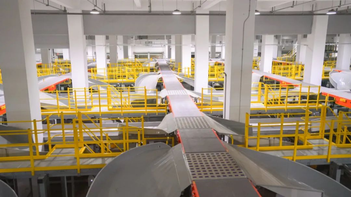 除了常规进出港区域,特别为国际快递及航空包裹收货、前置仓储、分拣预留场地。通过引入前沿物流设备,其处理能力较原嘉兴中心提升超过3倍,达到每小时90万件的分拣速率。
