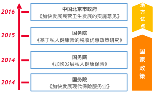 社保基金面临入不敷出已经成为政府完善社会保障体系的当务之急。国务院和地方从2014年开始出台一系列支持发展商业健康险的优惠政策,希望从源头分流减轻社保基金的压力,和社保一起构成有层次的社会保障体系。