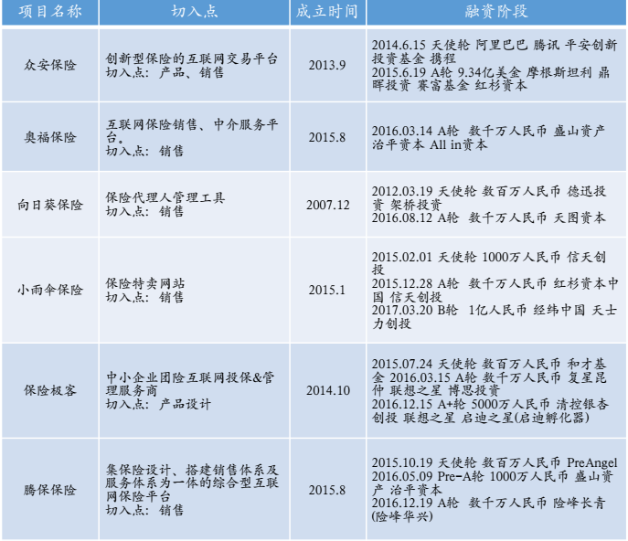 目前互联网保险领域入局者颇多,思路不同,但其出发点与切入点都可以概括在其中。以下是摘取拿到下一轮融资的部分互联网保险创业公司的概况: