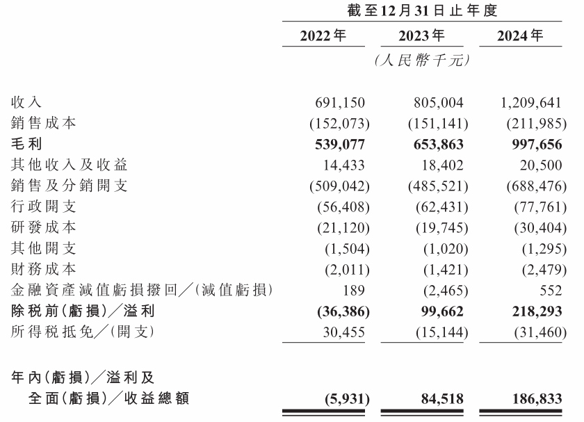 招股书显示,其公司的营业收入从2022年的6.91亿元增长至2023年的8.05亿元,再跃升至2024年的12.10亿元,年复合增长率约32%。在此期间,其毛利率分别为78.0%、81.2%和82.5%,呈逐年上升趋势。