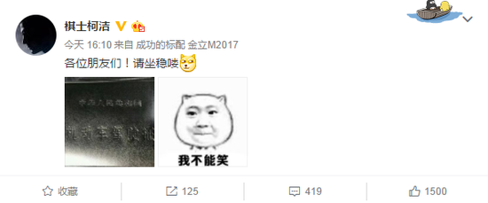 最近在河北廊坊参加首届新奥杯世界围棋公开赛的柯洁,抽空回北京考了科目四。他在自己的微博中晒出刚拿到手的驾照,并说到:“各位朋友们!请坐稳喽!”柯洁还回复网友,称自己驾照的所有考试,都是“一次性过的”。