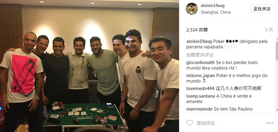 华夏幸福的巴西外援阿洛伊西奥在自己的Instasgram上晒出了与同在中超的巴西外援聚会打扑克的照片。照片中还有华夏幸福的埃尔纳内斯、鲁能的塔尔德利、上港的胡尔克、埃尔克森,上港的韦世豪则是聚会中唯一的中国球员。