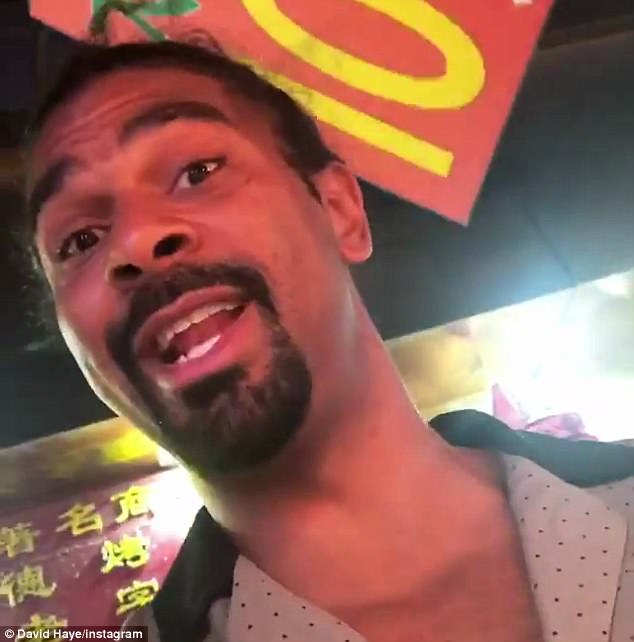 拳击手大卫•海耶斯最近来中国旅行了。他在自己的社交网络上发布了中国旅行的照片,包括与中国三轮车司机的合影、烤昆虫小吃。