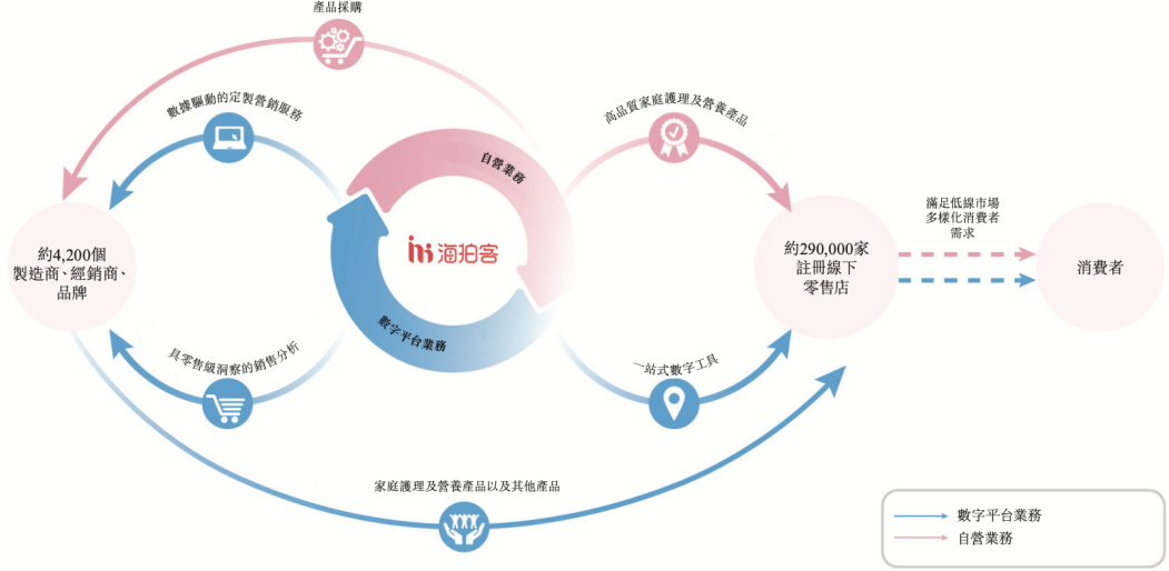 海拍客一方面,通过数字平台业务,为制造商、经销商、零售商撮合交易,另一方面,通过自营业务,直接以卖家身份销售家庭护理及营养产品和其他产品两大类产品。