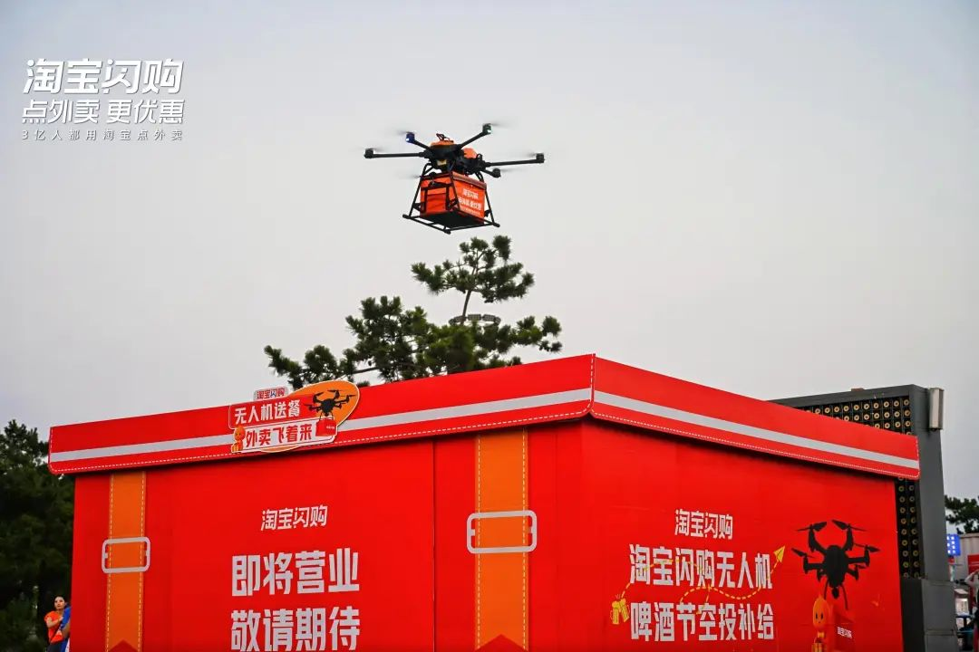 傍晚时分,来自北京的游客张先生刚在青岛西海岸新区金沙滩啤酒城拍完照,就用手机扫码下单了两杯冰镇青岛原浆,不到5分钟就看到闪着蓝光的无人机“啤酒侠”精准降落在取餐点,引得周围游客纷纷举起手机记录下这科技感十足的一幕。原来,这是本届青岛国际啤酒节联合淘宝闪购为用户提供的新型送餐体验——无人机订送啤酒,让用户沉浸式体验黑科技“啤酒侠”带来的便利。