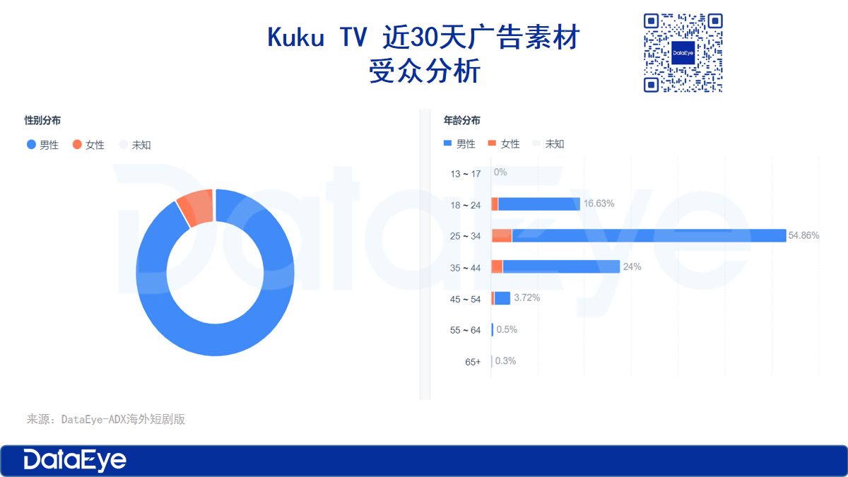 本期关注的案例是榜首的Kuku TV。据ADX海外版数据,近一个月,Kuku TV前期投放量较平稳,稳定保持在4000-5000组间。后期,Kuku TV投放量迎来高峰,于7月18日达到近一个月投放最高值10526组。