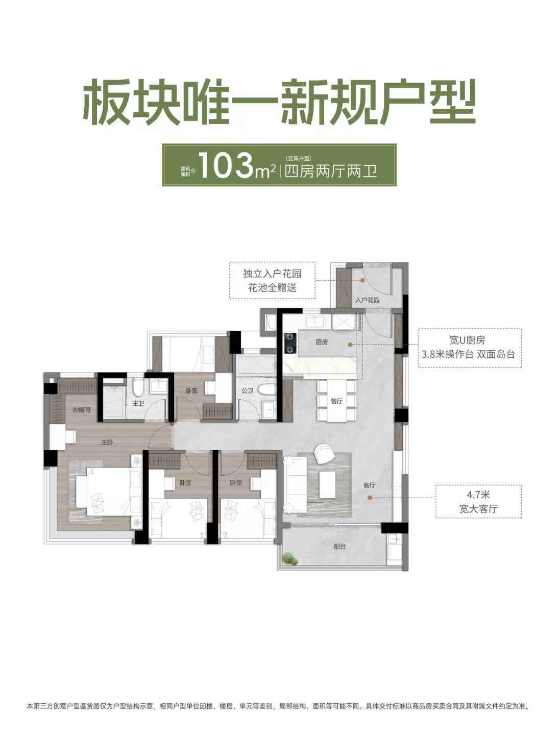 作为板块内首个新规产品,项目在有限面积内实现了超高实用率,创新研发出14种可变空间方案,满足不同客户群体的多样化需求。除中央空调等超配交标,还首创了“交付选配方案”,为业主提供多种选配服务。
