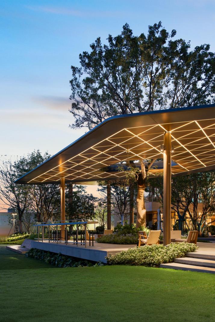 项目借鉴了日本星野OMO7设计理念,以公园绿地柔化城市边界,融合广府文化与当代美学,打造精致松弛的檐下生活场,带来了本土自然美学的高阶解法。规划打造约3300㎡檐下集商业,目前,骑行主题PAIX咖啡、40年老字号健民牛奶甜品、潮流美学花艺花馥四季等首批进驻品牌商家已开业。
