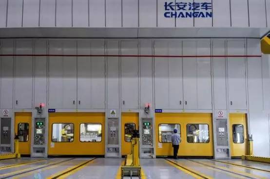制作车辆架构的冲压车间,采用封闭式高速冲压生产线,是长安中国品牌体系内第一条全自动化冲压生产线。焊装车间则是将冲压好的车辆架构焊接成车型,焊装车间拥有川崎、ABB等品牌机器人共计440台,自动化率72%。涂装车间,是对车辆漆面进行喷涂,共有108台机器人,自动化率达到70%,设备由杜尔、川崎以及希普瑞提供。最后一步的总装车间是将全部零配件组装成车的过程,自动化程度同样很高,引入了福特G-FPS生产体系,全面达到合资企业生产水平。