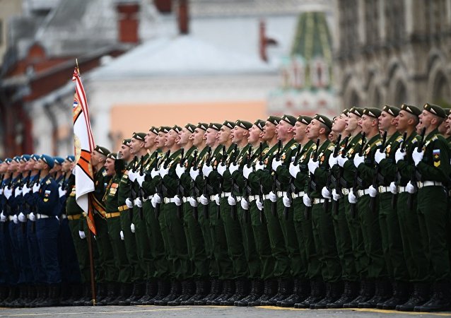 根据俄罗斯国防部倡议创建的军事爱国社会运动“少年军”阅兵联队首次从红场走过。