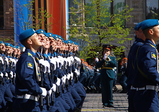 现在在红场行进的是空降部队团。