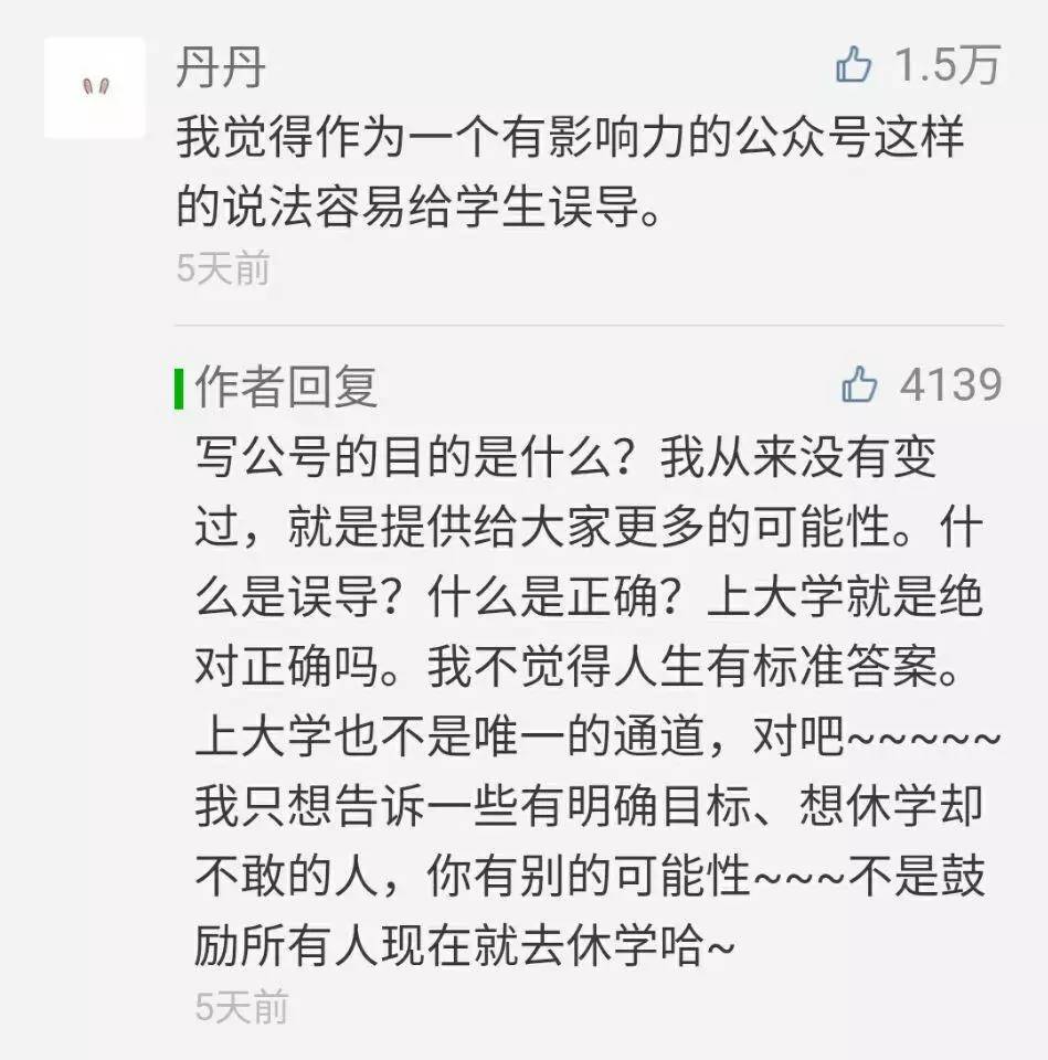 但另一方面,大家应该可以发现被咪蒙精选出来“反对咪蒙”的评论都十分理智、八分克制,但是更多的却是对于“休学”迷茫的人;