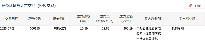 川能动力今日大宗交易平价成交28.82万股,成交额305.19万元