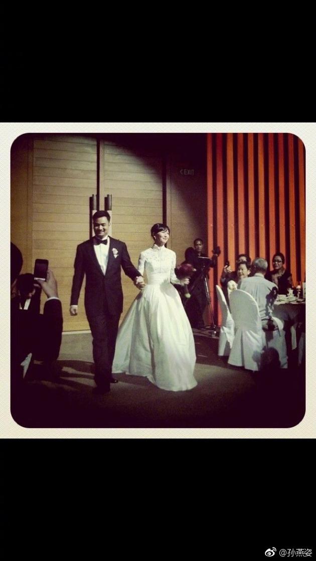 照片中的孙燕姿和老公幸福牵手,笑容满面,孙燕姿身穿一袭华美婚纱,在亲友的陪伴下走入婚姻的殿堂。孙燕姿与相恋5年多的男友纳迪姆于2011年在新加坡登记结婚 ;5月8日在新加坡举行婚礼。2012年5月7日,孙燕姿在结婚满一周年的前夕通过微博承认自己的怀孕喜讯 ,并于年10月产子。