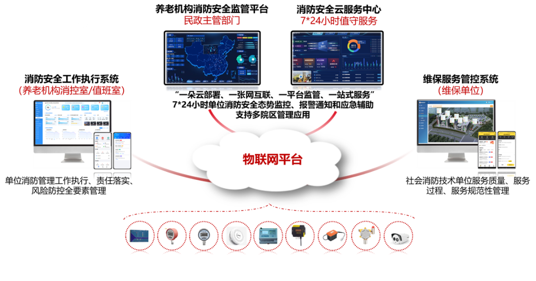 打造“民政主管部门、消防安全管理中心、各类养老机构”的多级消防安全云平台,实现全面感知、分级预警、协同处置和责任落实。同时开放接口,支持与消防救援局智慧消防平台互联,实现信息的实时共享与协同共治。
