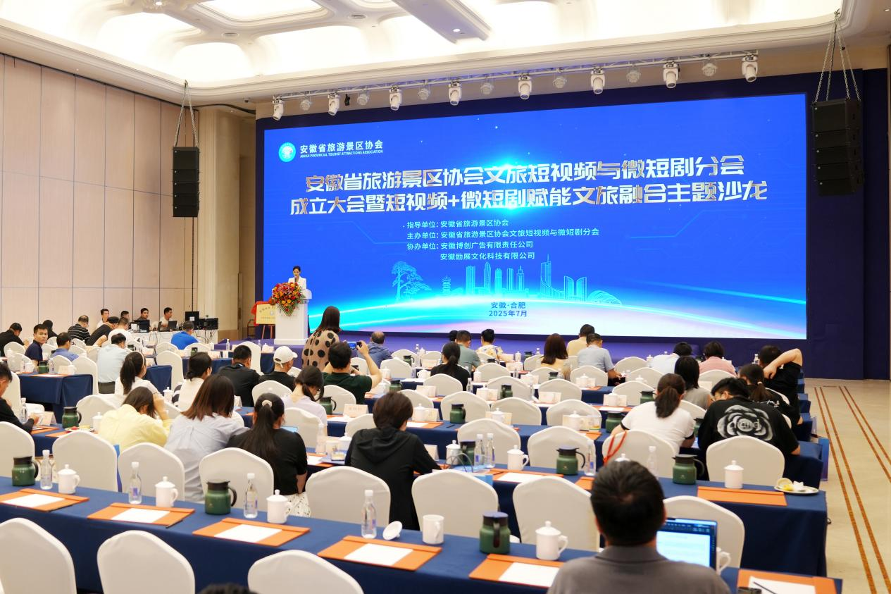 7月25日,安徽省旅游景区协会文旅短视频与微短剧分会成立大会暨短视频+微短剧赋能文旅融合主题沙龙在合肥成功举办。旅游景区行业同仁、影视行业专家、相关协会代表、媒体代表及会员代表等近百人参会,共同见证分会揭牌,并围绕“短视频+微短剧赋能文旅融合”这一主题,组织沙龙研讨。省旅游景区协会会长王云波及协会副会长、监事、常务理事单位代表等领导出席会议。