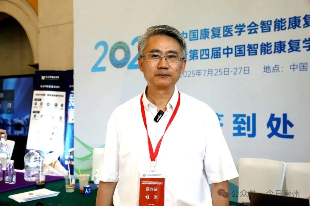 今天上午,刚刚与穿戴外骨骼机器人的林寒共同完成成都世运会火炬传递的电子科技大学人工智能研究院副院长、机器人研究中心主任程洪,下午又出现在了在崇州举行的2025年第四届中国智能康复学术与产业大会上。