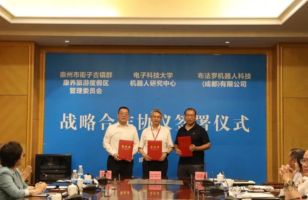 在7月26日的签约仪式上,电子科技大学机器人研究中心、布法罗机器人科技(成都)有限公司、成都青城山医院达成战略合作,将共同推动智能康养领域的深度协同,重点布局智能康复守护银发健康等领域。同时,街子古镇群康养旅游度假区管委会、电子科技大学机器人研究中心、布法罗机器人科技(成都)有限公司签署协议,将围绕智能康养研发制造及应用布局度假区产业发展,吸引优质医养、康养企业。