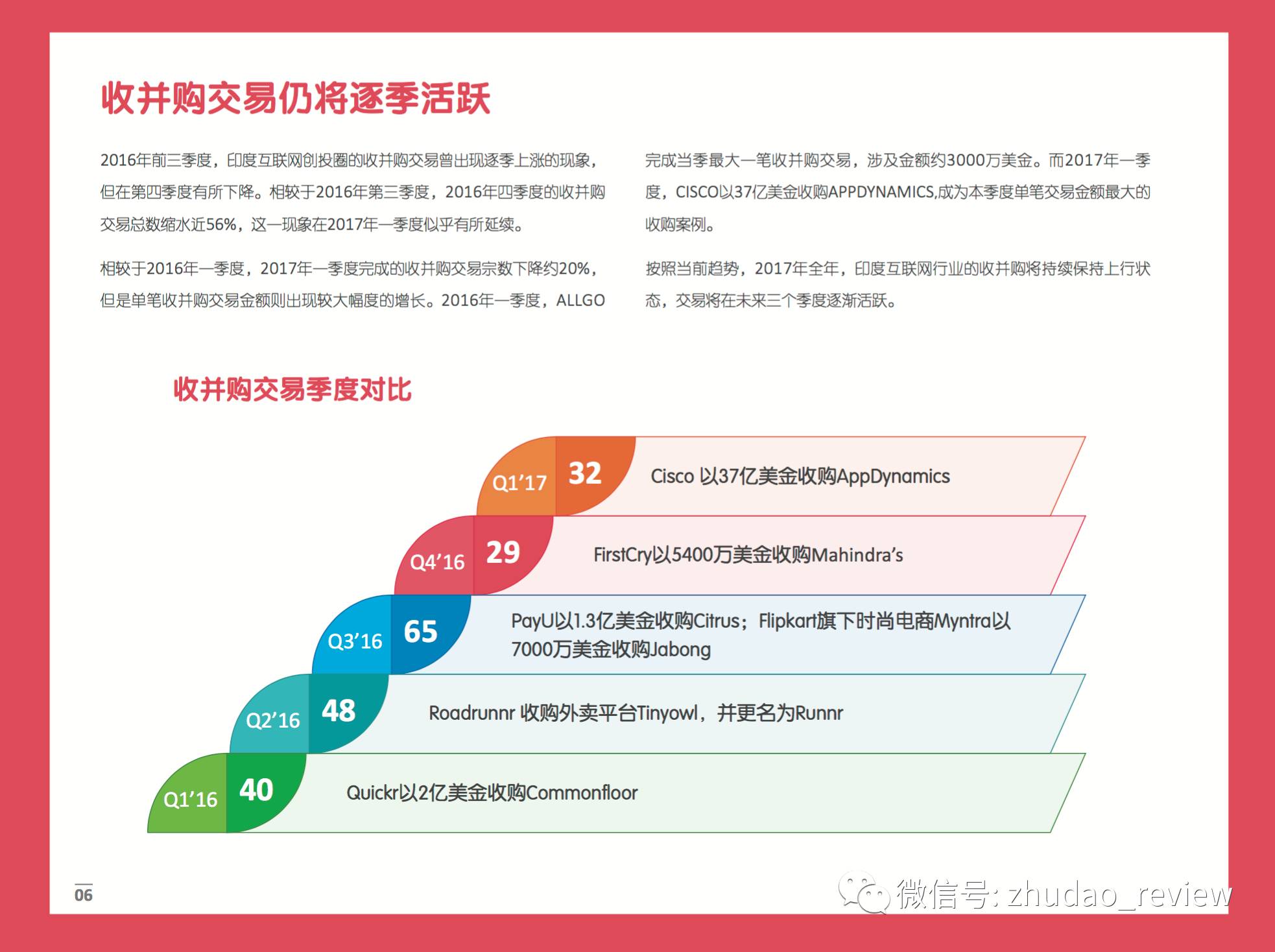 按照当前趋势,2017年全年,印度互联网行业的收并购将持续保持上行状态,交易将在未来三个季度逐渐活跃。