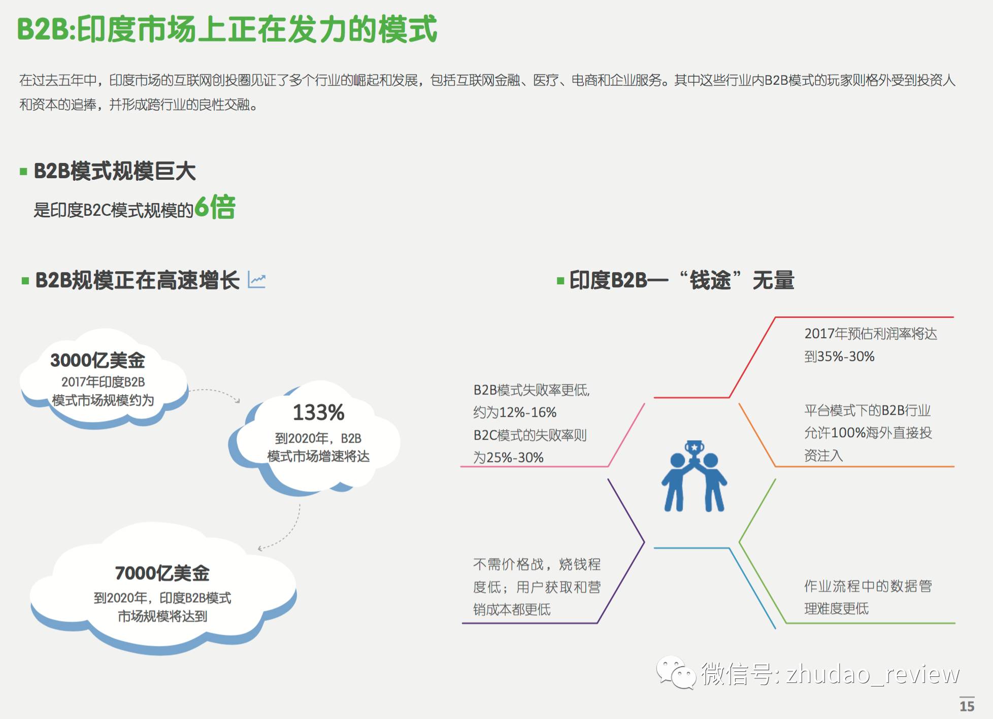 相比较B2C行业,B2B行业具有B2B模式失败率更低,(约为12%-16%)、不需价格战,烧钱程度低(不烧钱在印度市场难能可贵)、利润率更高(2017年预估利润率将达到35%-30%)、作业流程中的数据管理难度更低等优势。