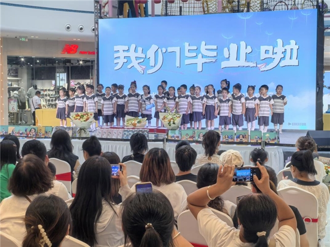 每周六的中庭舞台,都是西北区域运城吾悦广场最热闹的角落。上午十点,盐湖区实验幼儿园的孩子们穿着小小的学士服,在《毕业歌》的旋律中鞠躬、献花,家长们举着手机记录下这珍贵的瞬间。“本来以为毕业汇演就是简单表演,没想到吾悦广场搭了这么专业的舞台,还有灯光音响,孩子回来念叨了好几天‘在大商场里表演超开心’。” 市民李女士笑着说,她的女儿正是这场汇演的小主角之一。这样的温暖场景,是暑期档的常态。7 月以来,已有 7 所幼儿园的毕业汇报演出在这里上演,从稚嫩的合唱到创意舞蹈,孩子们的每一个动作都牵动着在场家长的心。而午后时段,舞蹈机构的芭蕾少女、绘画区的小小艺术家、乐器班里的萌娃乐手、街舞社团的酷小孩轮番登场,构成了一幅生动的 “少年成长图鉴”。