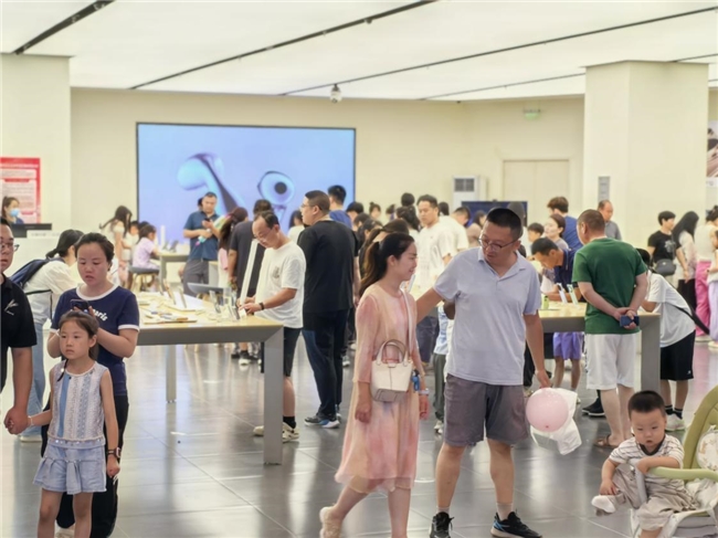 如果说童趣活动点燃了亲子家庭的热情,那么暑期补贴政策则让整个商场的消费活力全面迸发。在一楼服务台,市民张阿姨正拿着购物小票兑换小米吹风机:“买了件连衣裙和两双凉鞋,凑够了满额赠礼的金额,这吹风机家里正好缺,太划算!” 据工作人员介绍,满额赠礼活动启动以来,日均兑换礼品超 200 份,米家小家电、电影票等实用好物,成了刺激消费的 “催化剂”。更受欢迎的是超值团券活动。超市 85 团 100、屈臣氏 35 团 50、服饰类 70 团 100、黄金类 900 团 1000 的优惠,让消费者直呼 “囤货正当时”。“以前买黄金总等节日,这次吾悦的团券比平时便宜不少,刚给儿媳挑了条项链。” 正在周大福柜台结账的刘先生说。而在屈臣氏,年轻女孩们推着购物车选购防晒、面膜,“用了团券相当于打七折,夏天的护肤品一次性买齐了。”商户们同样感受到了热度。“从 7 月中旬开始,周末客流明显多了,团券核销率很高,上周销售额比 6 月同期涨了近五成。” 某运动服饰品牌店长李姐一边整理货架一边说。超市负责人也表示,生鲜区和零食区销量增长显著,“很多顾客都是冲着团券来的,我们也配合广场加了补货频次,保证供应。” 这种精准的补贴政策,既让消费者得实惠,又为商户带客流,正是新城控股 “深度运营” 中 “商户赋能” 的生动实践 —— 通过数据洞察消费需求,用定制化活动激活商业生态。