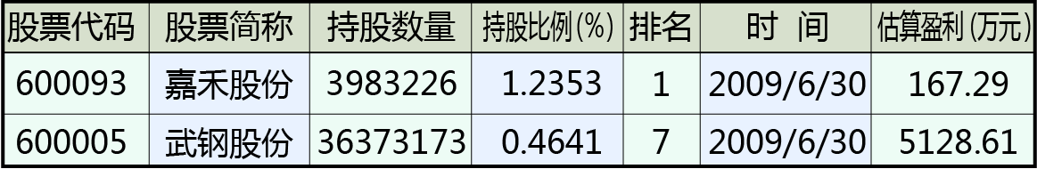 从2008年底到2009年三季度,A股呈现反弹行情,上证指数摸高到了3400点。而这一时期马信琪似乎并没有太大的动作,仅现身易见股份(600093.SH,曾用名:禾嘉股份)和武钢股份(600005.SH,已终止上市)两家上市公司前十大流通股名单,持股时间也没有超过一个季度,但这段时间的盈利不菲。到2009年三季报时,马信琪就没有出现在任何一家上市公司前十大流通股名单中了。马信琪这一时期持股情况如下表所示: