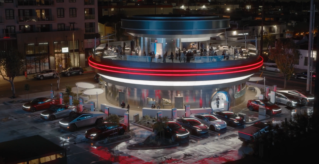 近日,特斯拉首家超级充电餐厅在美国加州好莱坞开业,餐厅呈“赛博朋克风格”,外部为充满未来感的“飞碟”造型,充电站将全天候7*24小时运营。此外,该餐厅还配备80个V4超充桩,面向非特斯拉车辆开放。