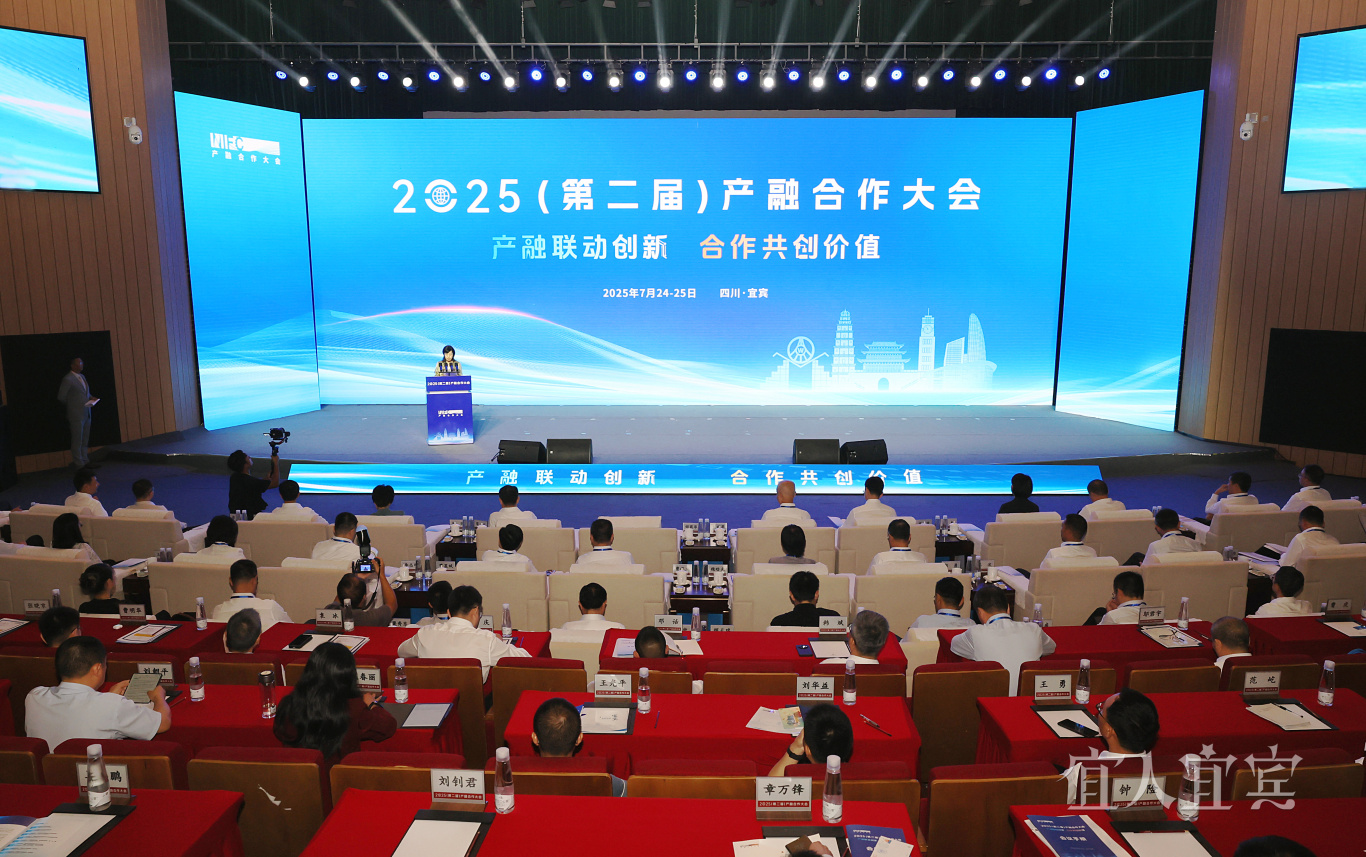 7月24日,2025(第二届)产融合作大会在宜宾开幕。来自国家部委、金融机构、产业龙头的千余名代表齐聚长江首城,共话产融合作探索实践。这场聚焦“科技、产业、金融深度协同”的国家级盛会,为何选择宜宾?