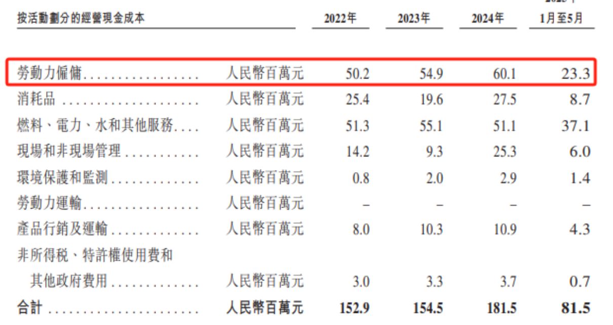 申请文件援引独立技术报告称,在报告期内,金岩高新的历史运营成本分别约为1.53亿元、1.55亿元、1.82亿元及8150万元。其中,成本支出最大的为“劳动力雇佣”, 2024年超过6000万元。