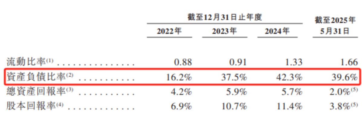 申请文件还显示,金岩高新2022年至2024年的资产负债率分别为16.2%、27.5%和42.3%。公司表示,2024年资产负债率的上升主要归因于计息的银行贷款及其他借款总额增加了1.05亿元。