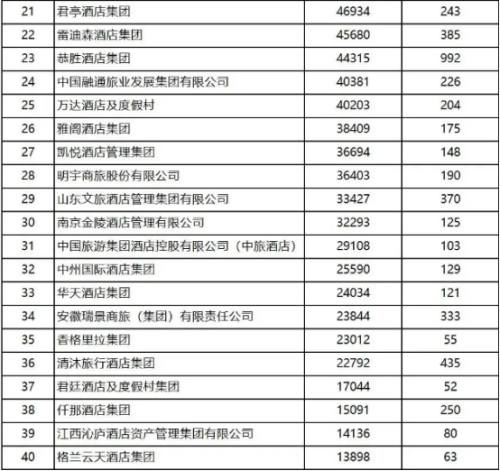 2024年度中国饭店集团60强名单节选 图源:中国旅游饭店业协会官方公号