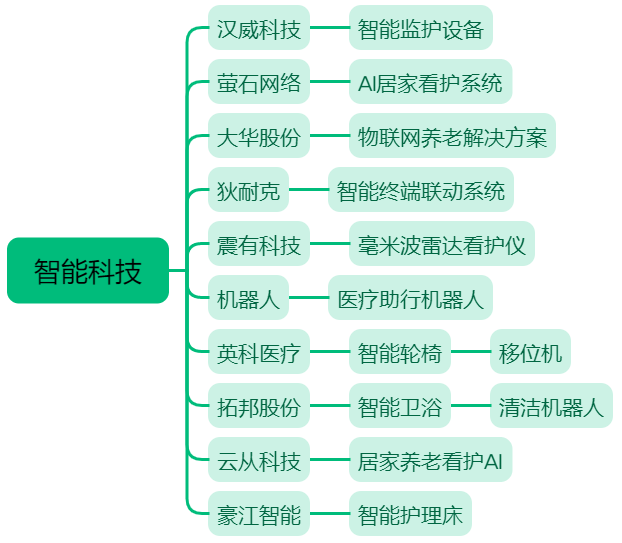 核心公司范例:汉威科技(300007.SZ)、萤石网络(688475.SH)、大华科技(002236.SZ)、狄耐克(300884.SZ)、震有科技(688418.SH)、机器人(300024.SZ)、英科医疗(300677.SZ)、拓邦股份(002139.SZ)、云从科技(688327.SH)、豪江智能(301320.SZ)