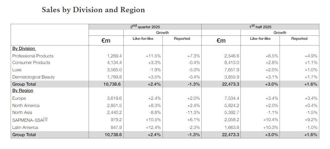 7月30日,欧莱雅集团披露2025年上半年业绩。