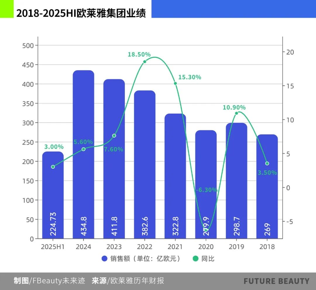 7月30日凌晨,欧莱雅集团发布2025年上半年业绩报告,集团实现实现销售额224.73亿欧元(约合人民币1861.9亿元),同比增长3%;营业利润达47.4亿欧元(约合人民币392.77亿元),同比增长3.1%。