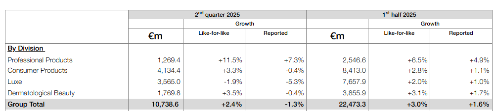 皮肤科学美容事业部的增速仅次于专业美发产品部,上半年部门销售额同比增长3.1%至38.56亿欧元(约合人民币319.8亿元)。