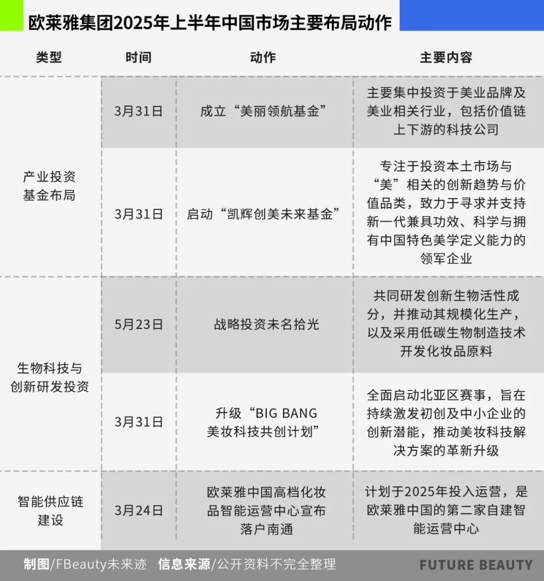 在市场增速低迷的情况下,博万尚依旧展现出行业“领头羊”的自信,而这也并非虚言。《FBeauty未来迹》整理发现,今年上半年,欧莱雅集团对中国市场的投资主要包括三大层面: