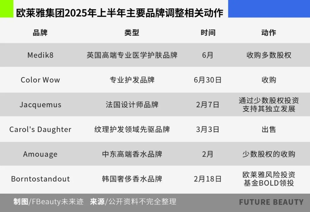 回顾今年上半年,欧莱雅集团约有5次品牌布局和投资动作。此外,欧莱雅集团还于3月将护发品牌Carol's Daughter出售给独立企业家。