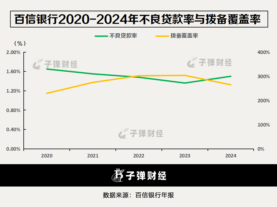 在盈利模式上,百信银行高度依赖利息收入。2022年至2024年,利息净收入占比分别为94.35%、91.91%和91.53%。