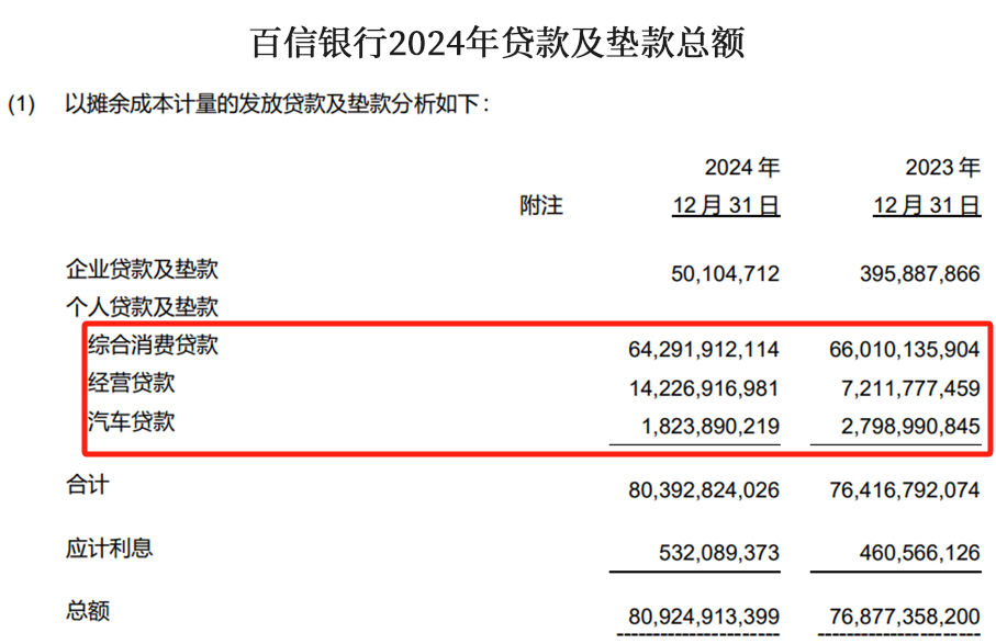 2024年报披露,该行综合消费贷款总额为642.92亿元,贷款总额占比高达79.97%。