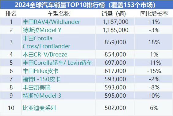 这也难怪,Model 3 平均1.5分钟卖出一台,Model Y更是在2023年拿下了全球销冠。2024年,这一桂冠虽被丰田RAV4抢走,但两者差距并不大,只有不到3000辆。