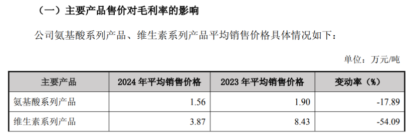 而2024年的“增收不增利”的现象主要源于两方面:一是L-缬氨酸等主力产品价格大幅下跌,据其披露的数据,氨基酸系列产品2024年平均销售价格1.56万元/吨,同比下滑17.89%,维生素系列产品均价更是暴跌54.09%;二是海外市场拓展带来的成本上升。