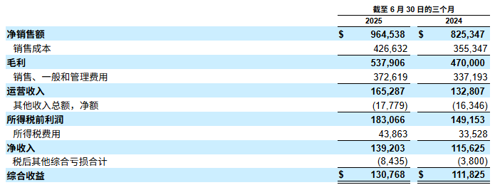 近日,HOKA、UGG 等品牌的母公司Deckers Brands(戴克斯户外)公布截至2025年6月30日的2026财年第一季度财报。期内集团净销售额同比增长16.9%至9.64亿美元,营业利润、净利润分别为1.65亿、1.39亿美元,均实现超20%涨幅。