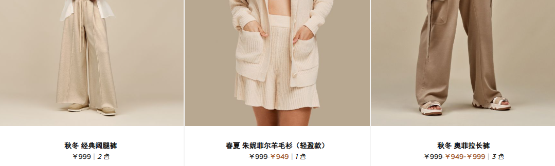 除此之外,戴克斯户外还“深思熟虑地扩展服装和配饰业务”。官网显示,UGG有超过50款服装配饰产品,价格在150-2200元之间,覆盖各季节与部位装扮,除冬季外套外,大部分产品价格在1000元左右,这相当于甚至低于一双UGG雪地靴的价格。