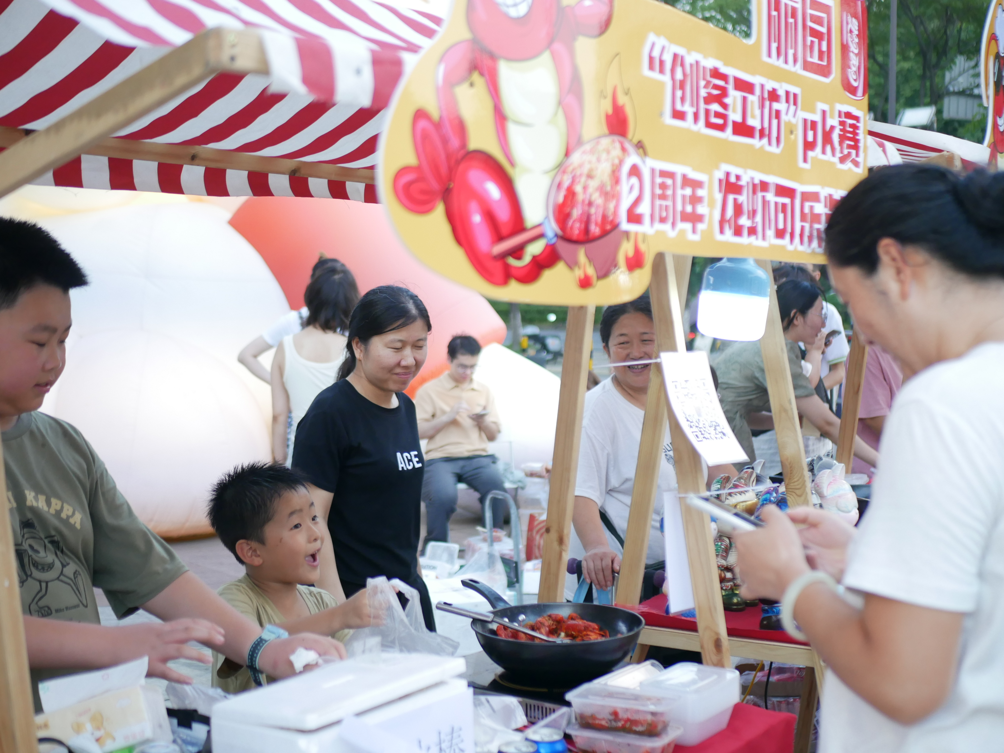 周年焕新,为青少年创新激情再添一把火。丽园社区第 2 届创客工坊 PK 大赛(2 周年)暨龙虾可乐节,宛如一台强大的创新“引擎”。在首届活动成功举办的基础上,本次活动赛制更为灵活,增设了丰富多样的互动环节。而活动中的体验式商战,让孩子们深刻领悟父母赚钱的艰辛。丽园社区精心准备了 10 个专属龙虾摊位,模拟真实的商业运营场景。青少年们需要自主规划预算、寻找资源、推广龙虾产品。在这个过程中,他们遭遇了资金短缺、激烈竞争等诸多难题。杨尚霖小朋友说:“在这次活动中,我们团队亲自买东西、做决策。我发现,经营一个小摊位并不容易,需要考虑很多事情。通过这次经历,我更加深刻地体会到了父母平时工作的辛苦和不容易,也学会了更加珍惜他们的付出。”这种亲身体验式的教育,远比单纯的说教更具感染力,让感恩与珍惜在孩子们心中深深扎根。