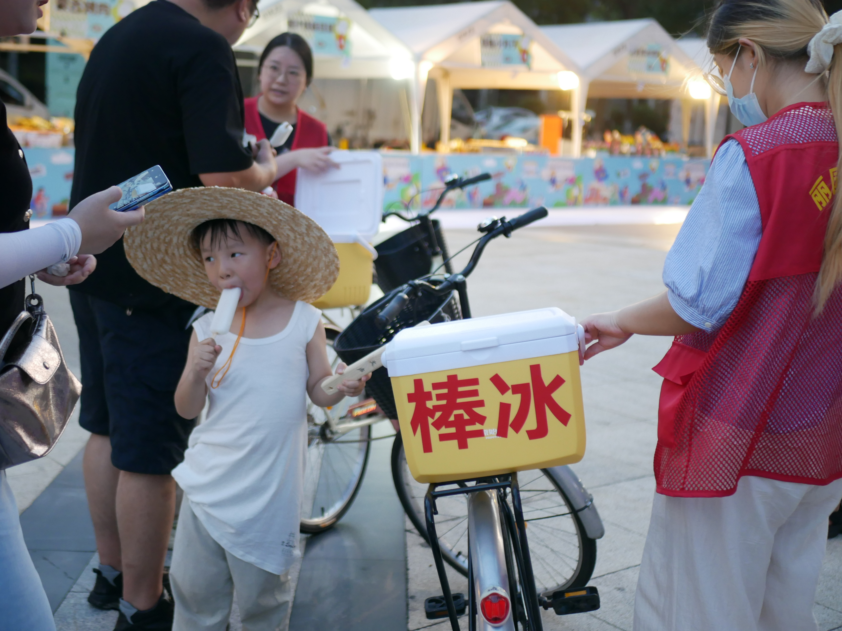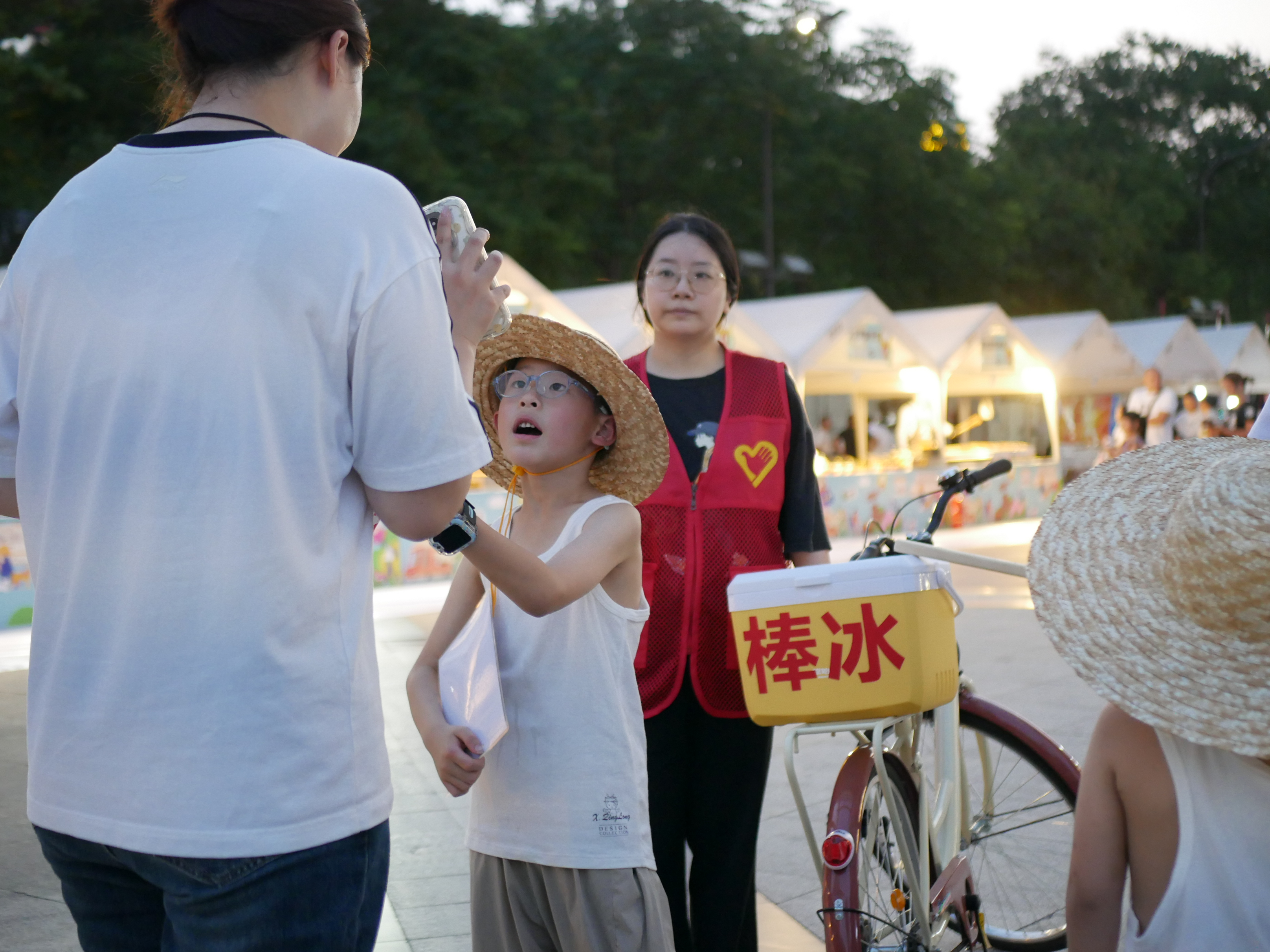 活动现场,流动的“复古棒冰”摊位成为一道独特的风景线。3 个小男孩推着自行车,身着 70 年代的背心及草帽,嘴里大声吆喝着:“快来买我们的棒冰啊!”手中两根木棒有节奏的敲击声,清脆悦耳,仿佛穿越时空的信号,吸引着众多人的目光,不少人被这极具复古氛围的场景所吸引,纷纷围拢过来。