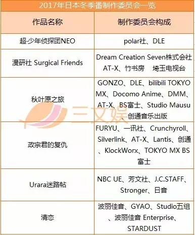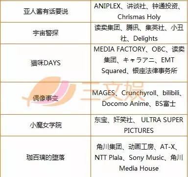 此外,统计2017年30部冬季新番中,我们看到好几家动画公司都有中方投资的身影。包括B站投资的《秋叶原之旅》、《偶像事变》,而上海天谭文化参与了《南镰仓高校女子自行车部》。